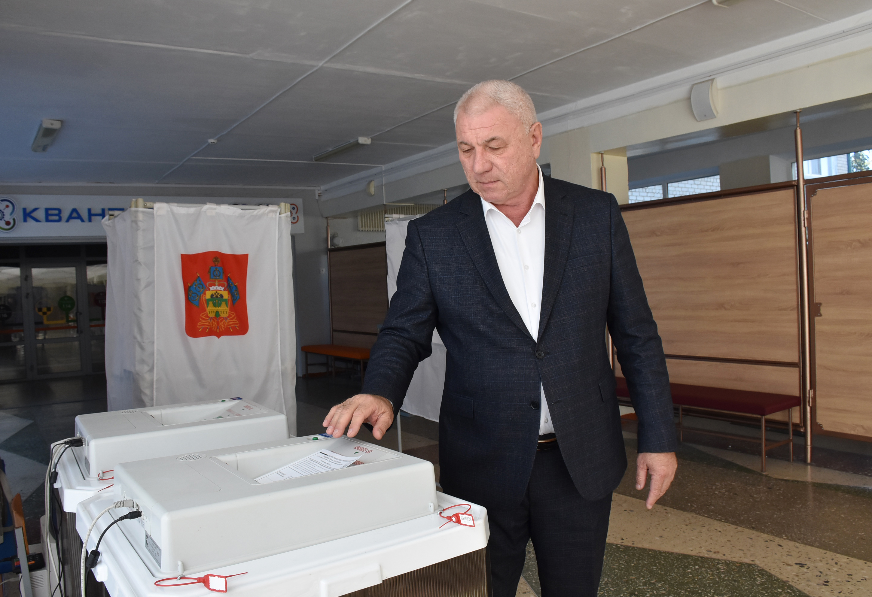 На своем избирательном участке №24-15 Владимир Анатольевич решил проголосовать в первый из трех отведенных для голосования дней.