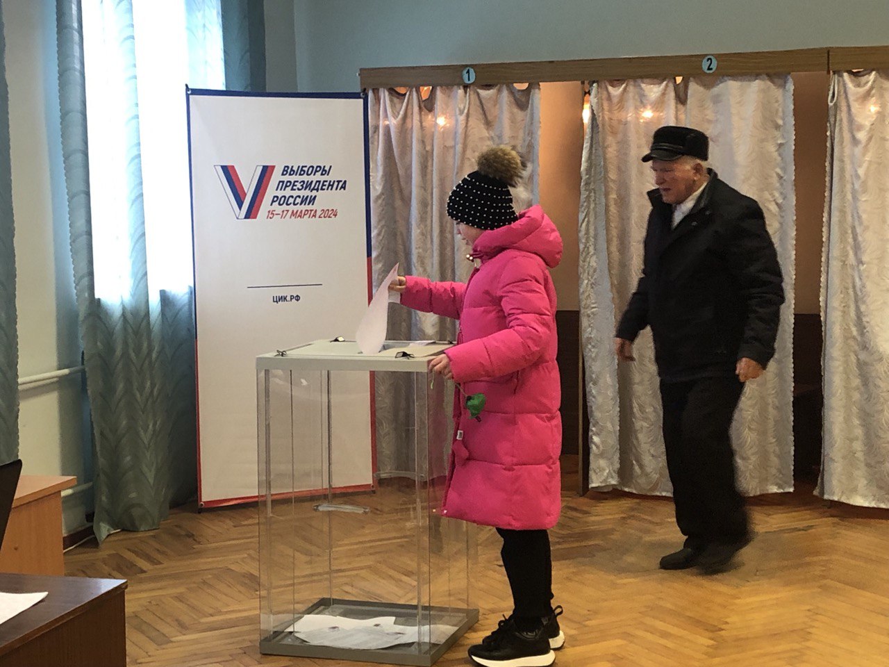 Также как и вчера приходят голосовать избиратели целыми семьями, голосуют избиратели пожилого возраста и молодежь.