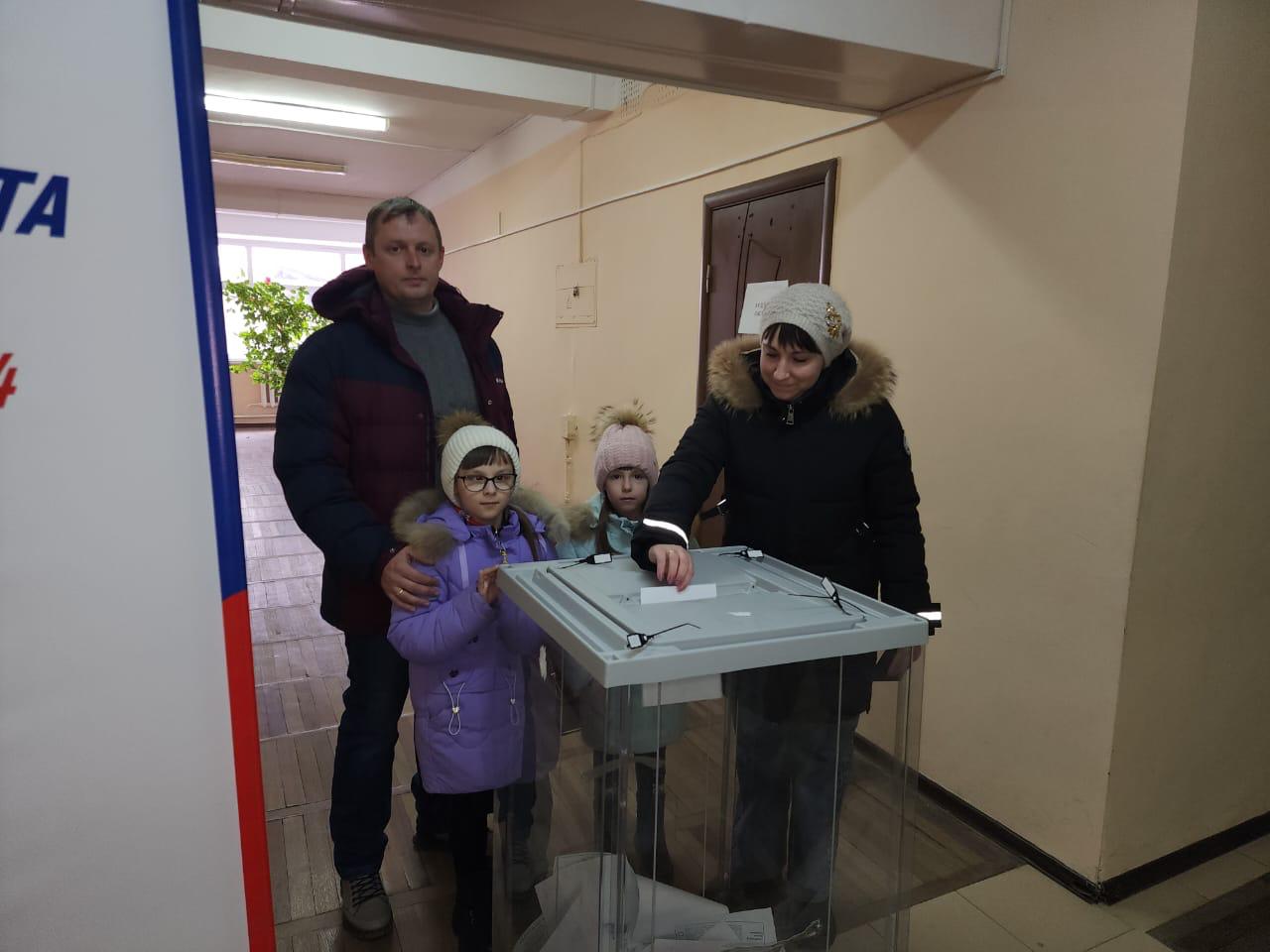 На избирательные участки приходят и целыми семьями.
