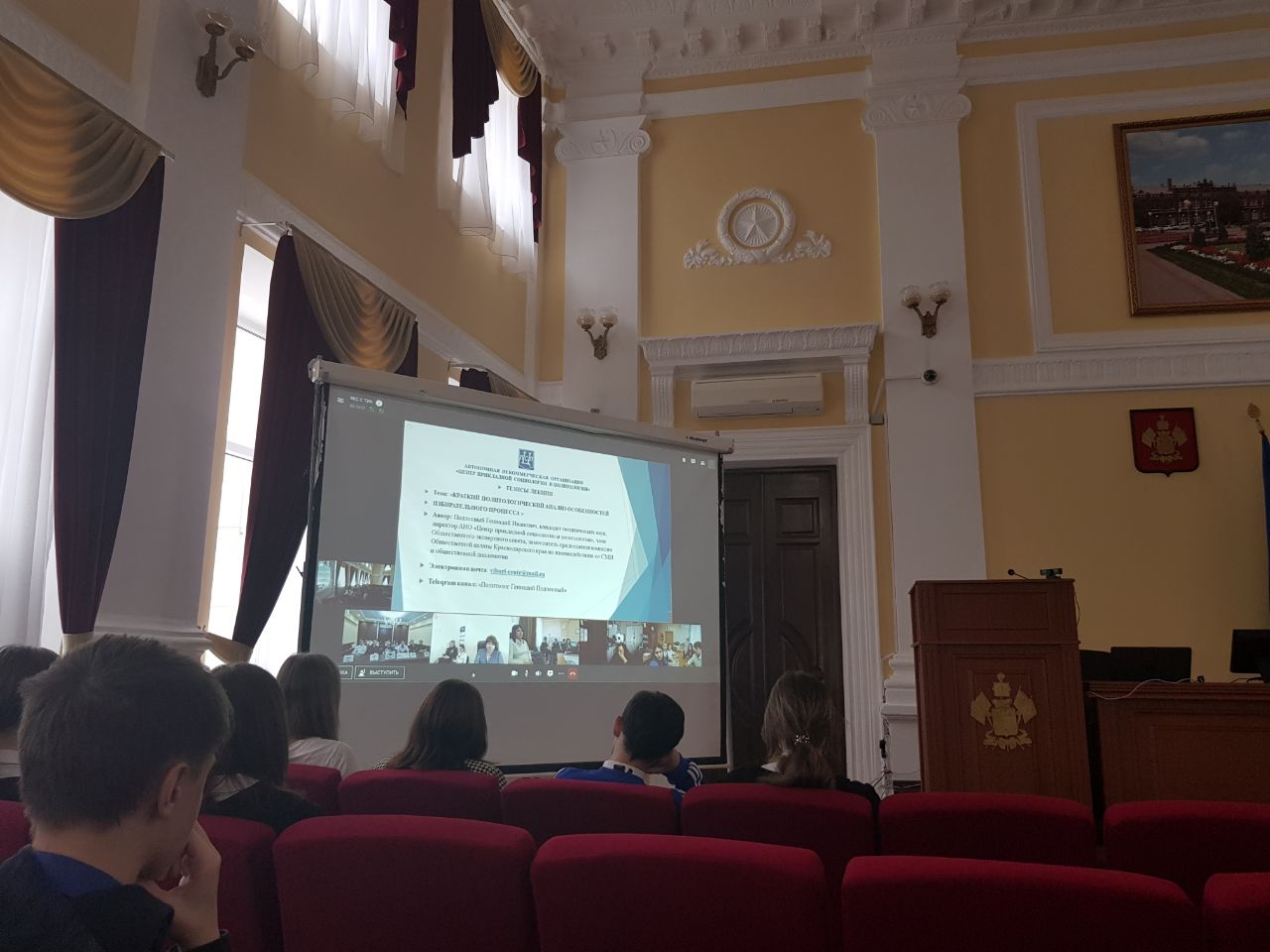 Состоялось четвертое лекционное занятие в Молодежной школе правовой и политической культуры. Тема сегодняшнего занятия была посвящена социально-политическим технологиям.