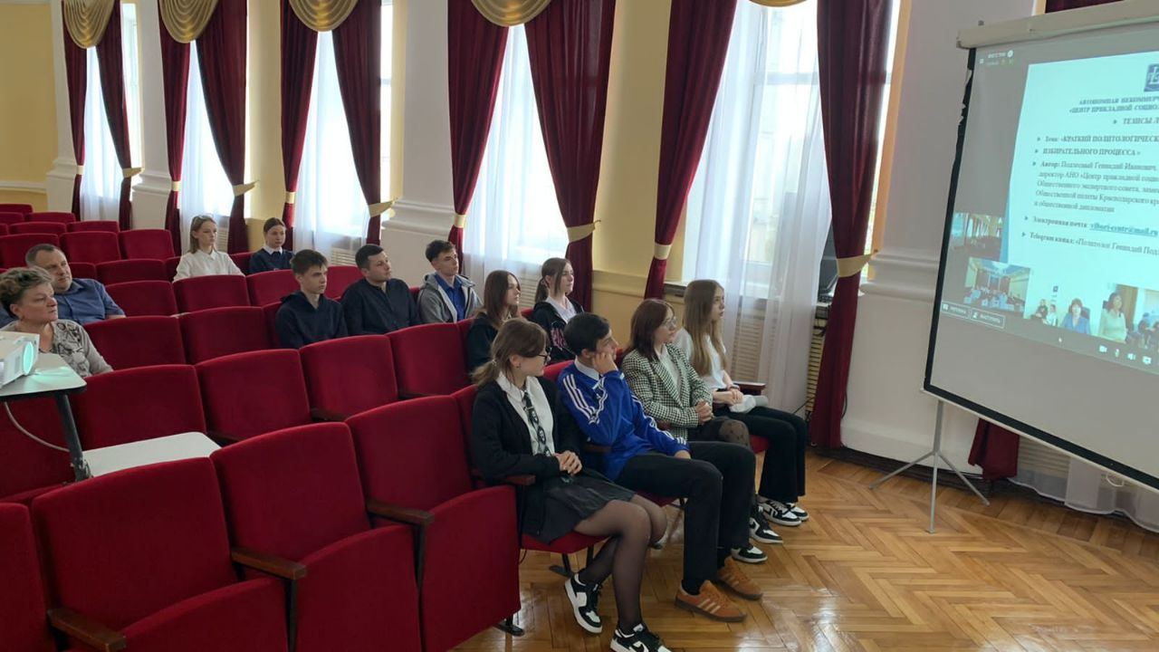 Территориальные избирательные комиссии Кропоткинская и Кавказская совместно организовали видеотрансляцию для молодых слушателей в зале администрации Кавказского района.