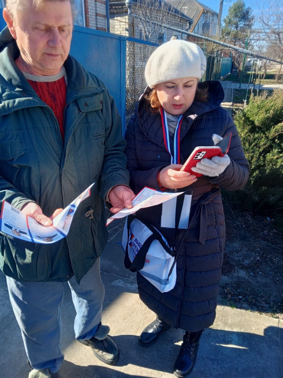 Каждому избирателю члены комиссий передают лифлеты с подробной информацией о выборах и о зарегистрированных кандидатах на должность Президента Российской Федерации.
