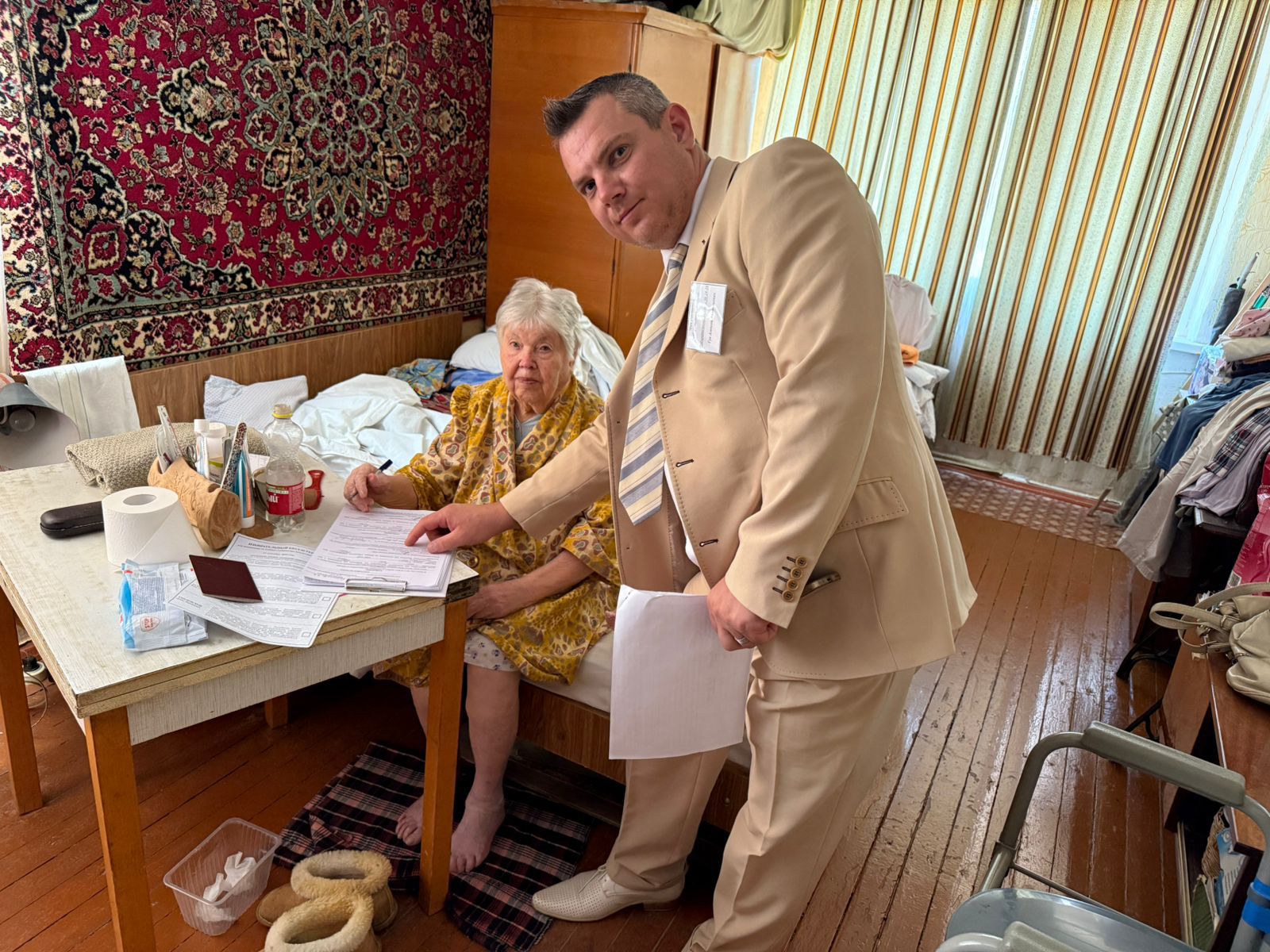 К избирателям с ограниченными возможностями здоровья и не имеющих возможность по состоянию здоровья самостоятельно прибыть в помещение для голосования выезжают члены участковой комиссии для организации голосования вне помещения для голосования.