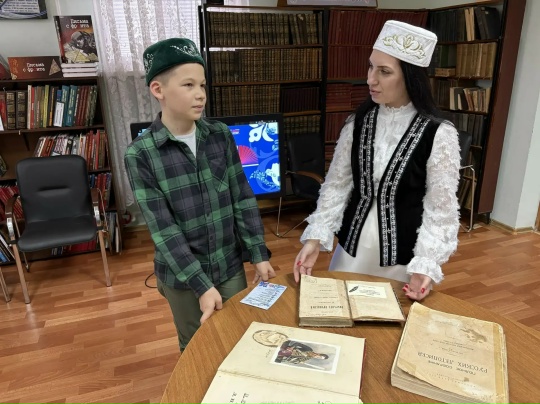 Гости отправились в квест‑приключение по залам библиотеки с «Паспортом путешественника»: учились писать «Мир» и «Здравствуйте» на разных языках, знакомились с казачьим костюмом, чайной культурой и даже искали раритетные издания.